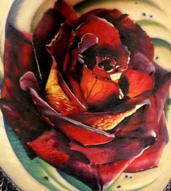 背部非常逼真的彩色大玫瑰纹身图案