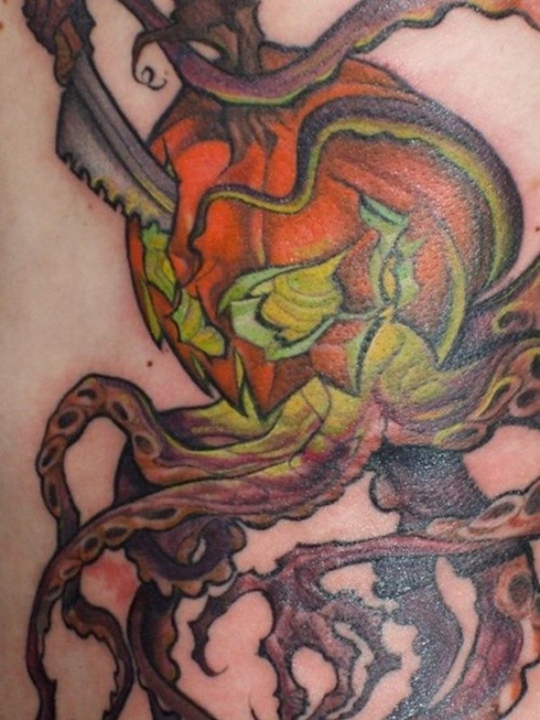 惊人的彩绘腐烂南瓜刀和章鱼纹身图案
