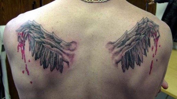 背部有趣的彩色血腥翅膀纹身图案
