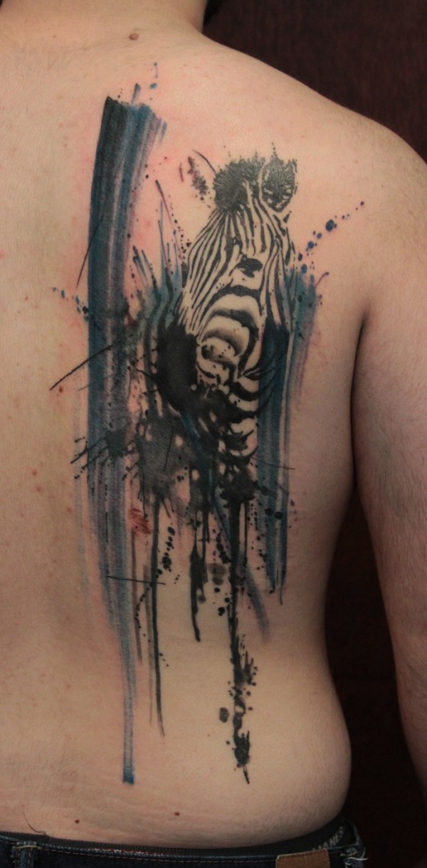 背部黑斑与很酷的斑马头纹身图案