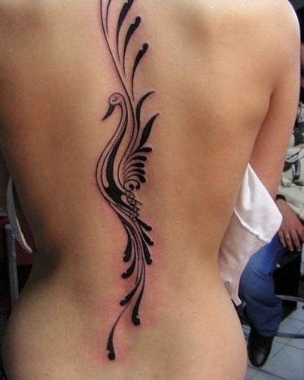 背部有趣的设计装饰黑色天鹅图腾纹身图案