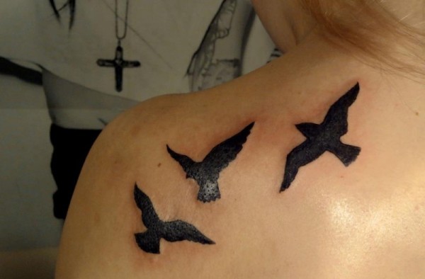 背部黑色的小鸟纹身图案