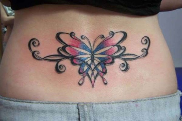 腰部彩色的蝴蝶藤蔓纹身图案