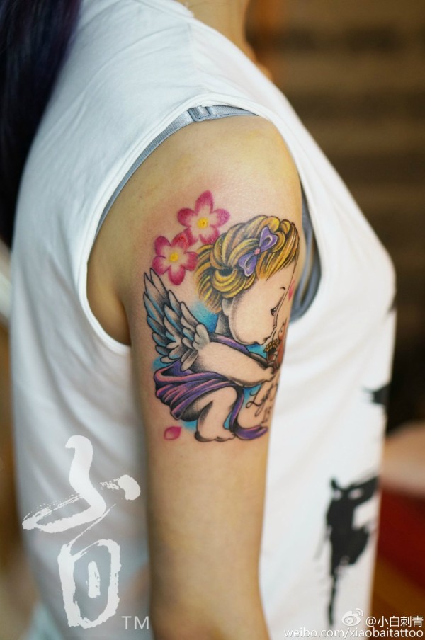 复古卡通红唇美女手臂纹身_卡通纹身图案大全_纹身图吧
