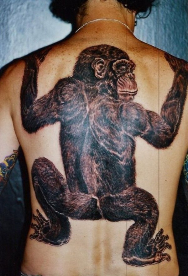 背部印象深刻的大型黑猩猩纹身图案