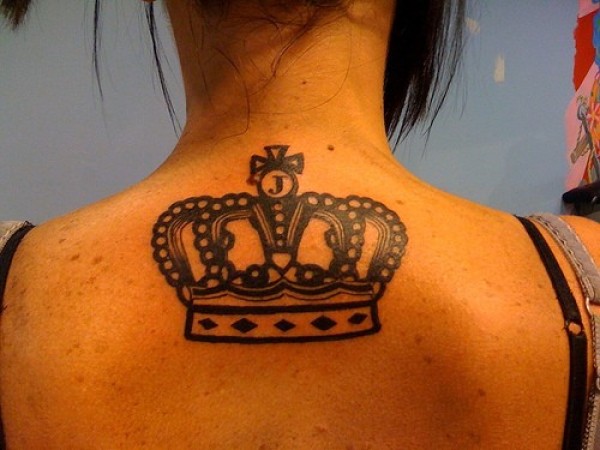背部黑色皇冠纹身图案