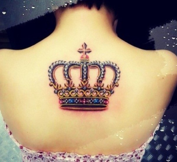 背部非常漂亮的珠宝皇冠彩绘纹身图案