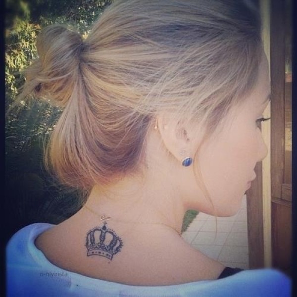 女孩背部灰色的皇冠纹身图案