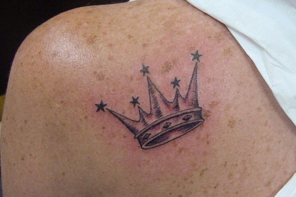 背部皇冠与星星纹身图案