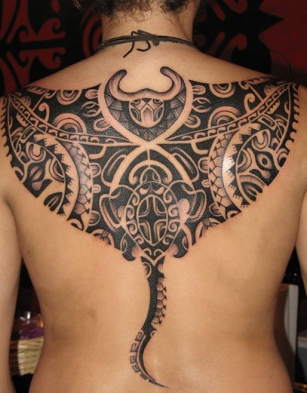 背部部落风格黑色蝙蝠图腾纹身图案