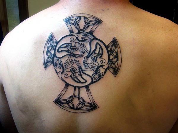 背部爱尔兰风格图腾十字架纹身图案