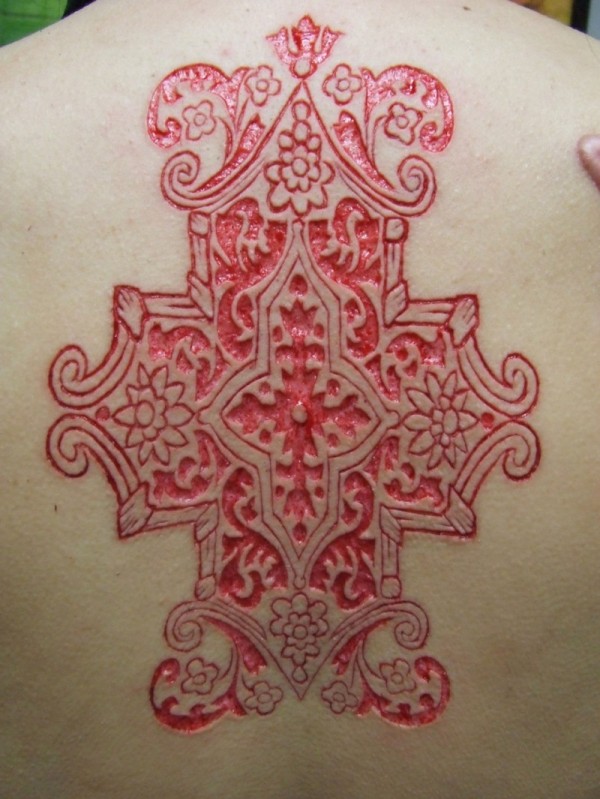 背部割肉花朵图腾纹身图案