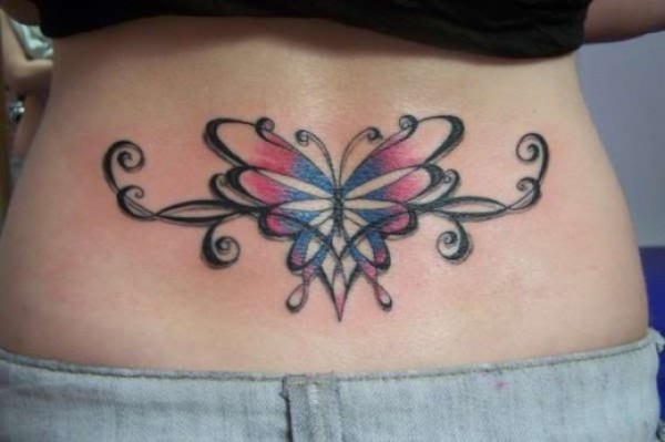 腰部彩色的蝴蝶与图腾纹身图案