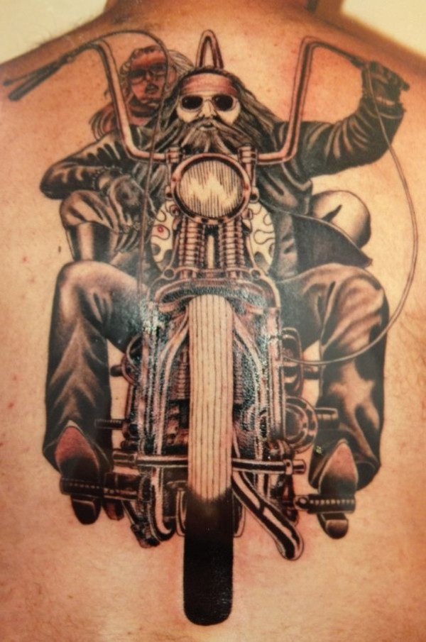 背部摩托车爱好者人像纹身图案