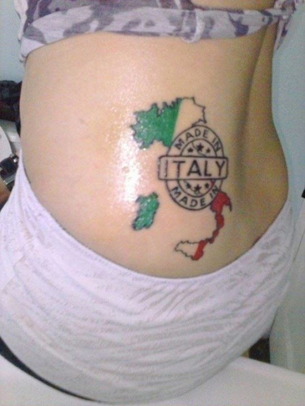 腰部意大利地图彩绘纹身图案