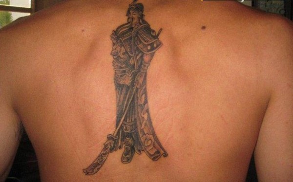 背部中国风战士纹身图案