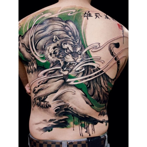 背部彩绘中国风老虎纹身图案