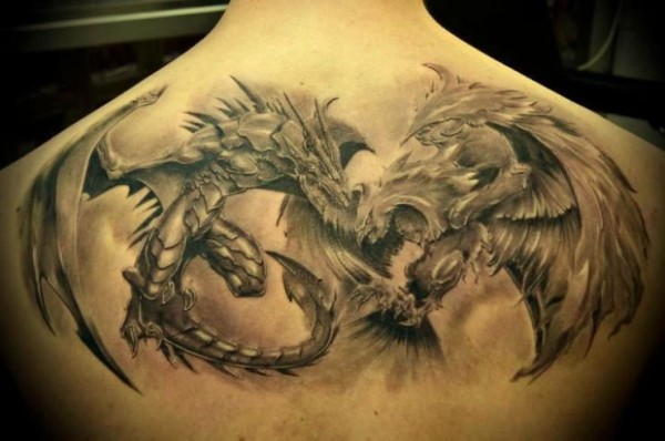 龙纹身手稿_一组老传统黑灰龙手稿纹身图案