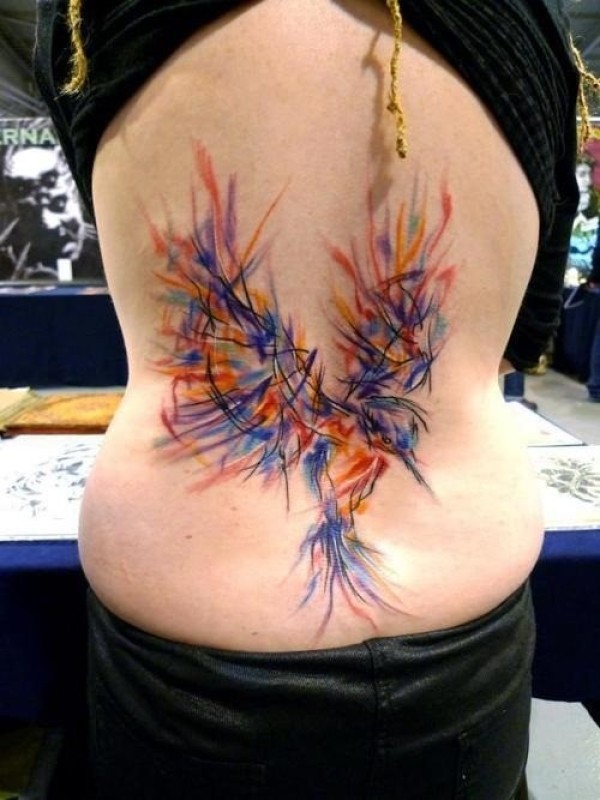 腰部多彩的鸟纹身图案