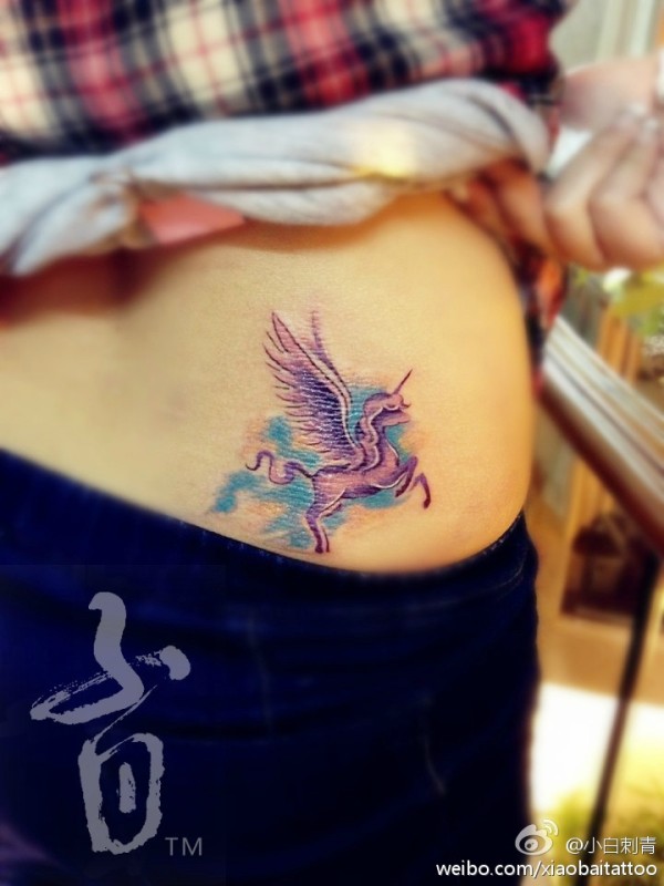 分享一款腰部时尚性感的蝶恋花纹身图案_腰部纹身图案大全_纹身图吧