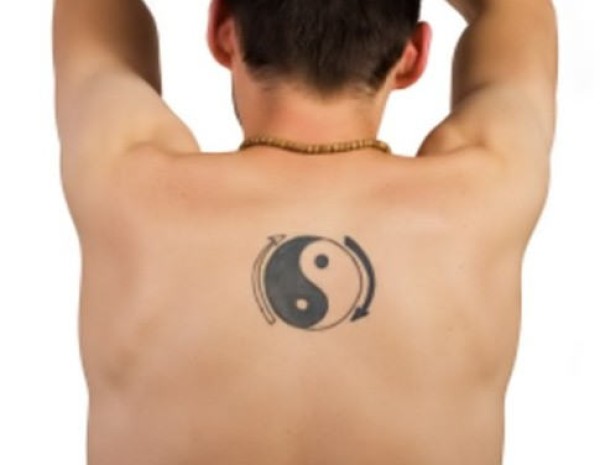 黑白的阴阳八卦背部纹身图案