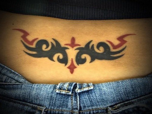 腰部黑色和红色风格图腾纹身图案