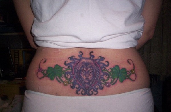 腰部哭泣的魔鬼女人和四叶草纹身图案