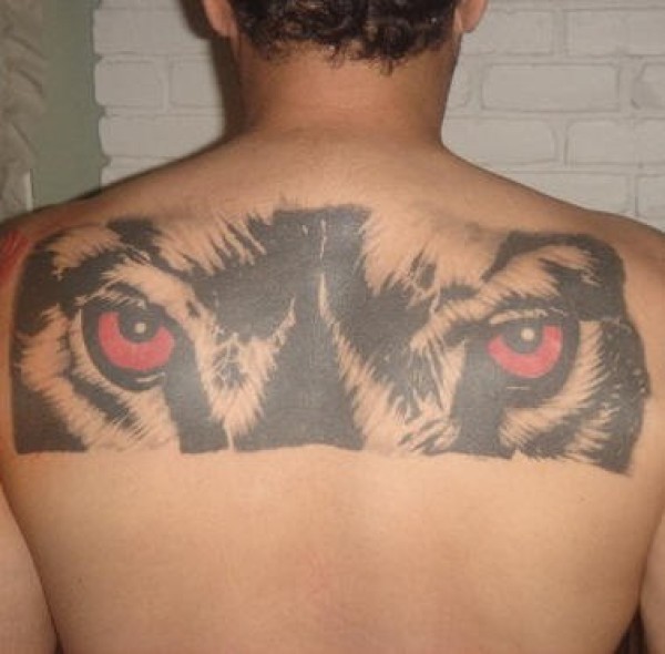 背部彩色狼的眼睛纹身图案