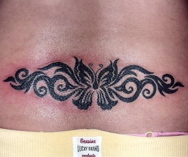 腰部黑色图腾与蝴蝶纹身图案