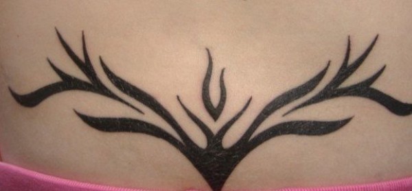 背部黑色的部落图腾树纹身图案
