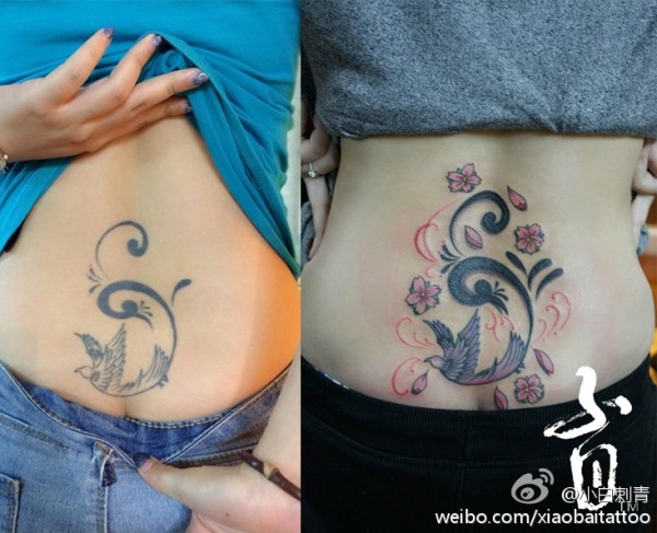 分享一款腰部时尚性感的蝶恋花纹身图案_腰部纹身图案大全_纹身图吧