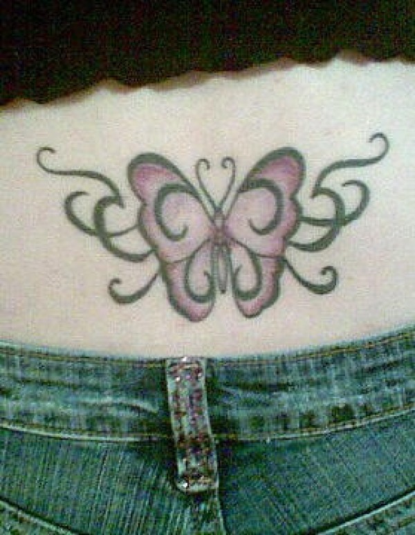 腰部装饰蝴蝶与黑色藤蔓纹身图案