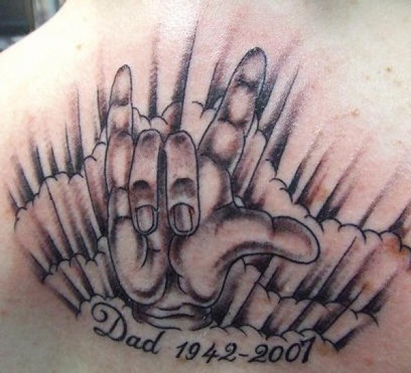 背部手掌与英文字母纹身图案