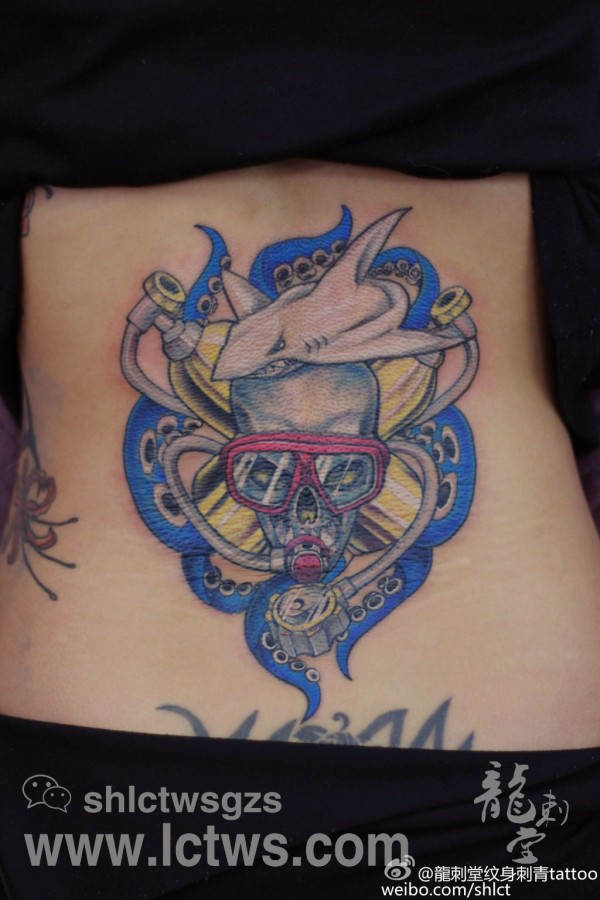女性腰部莲花花纹刺青_腰部纹身图案大全_纹身图吧