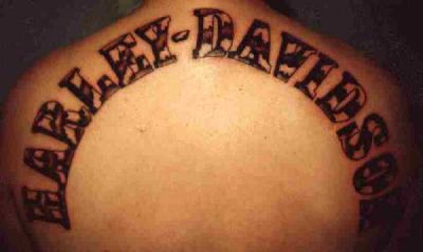 背部哈雷戴维森字母纹身图案