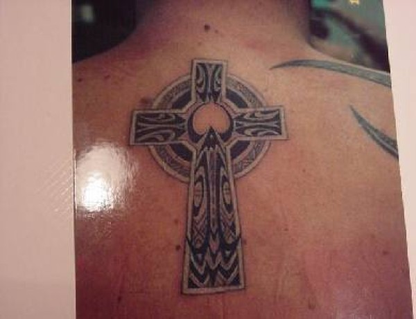 背部石头凯尔特十字架纹身图案