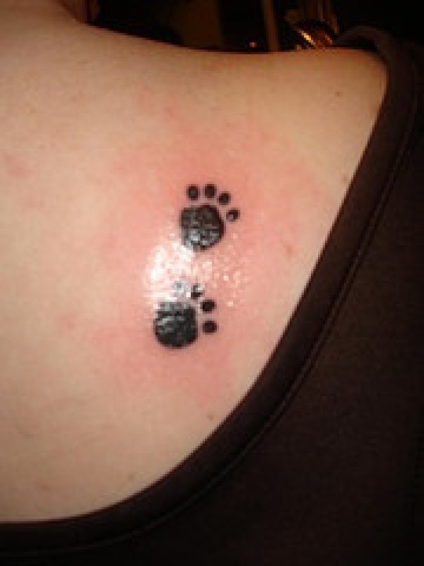 背部两个可爱的爪印纹身图案