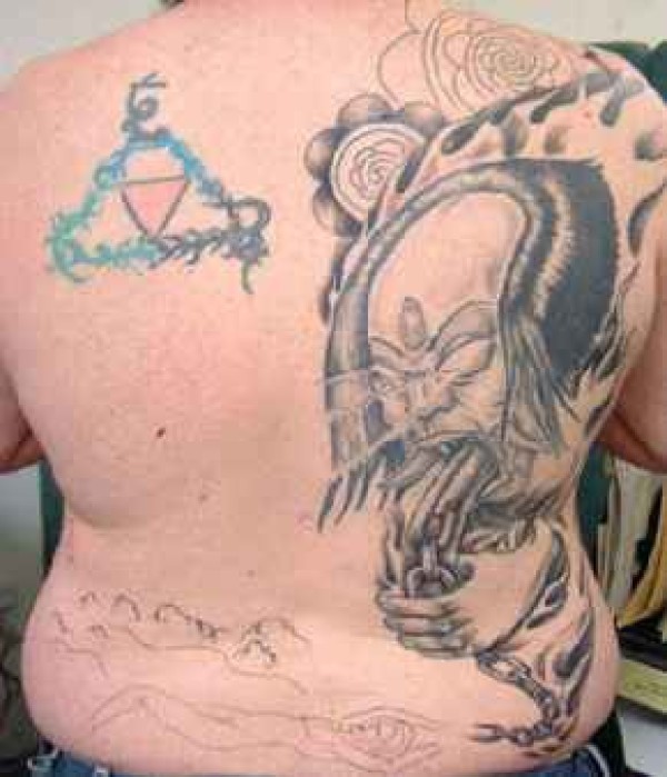 背部三角形与恶魔纹身图案