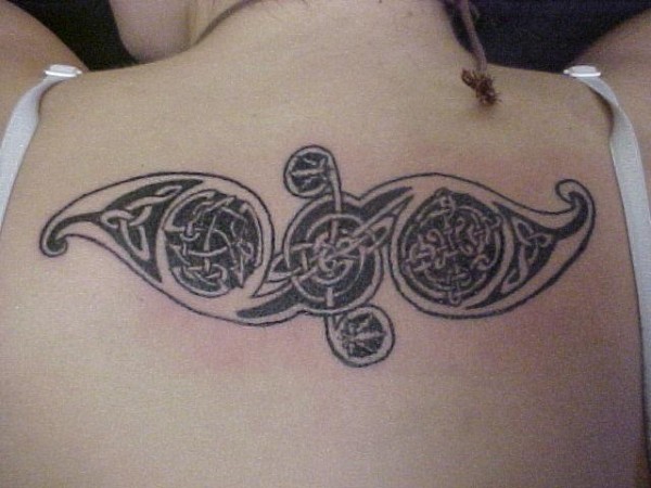 背部凯尔特结图腾黑色纹身图案