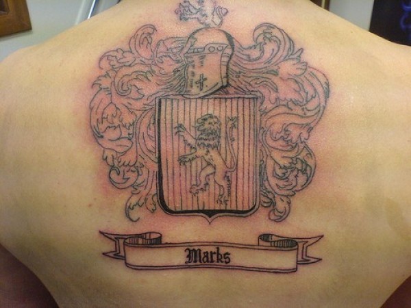 背部黑色线条徽章纹身图案