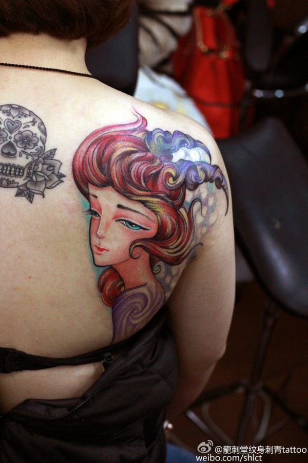 复古卡通红唇美女手臂纹身_卡通纹身图案大全_纹身图吧