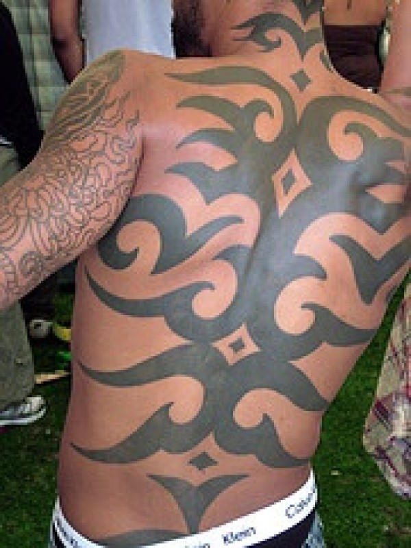 满背黑色的部落符号纹身图案
