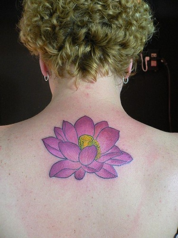 背部紫色莲花纹身图案