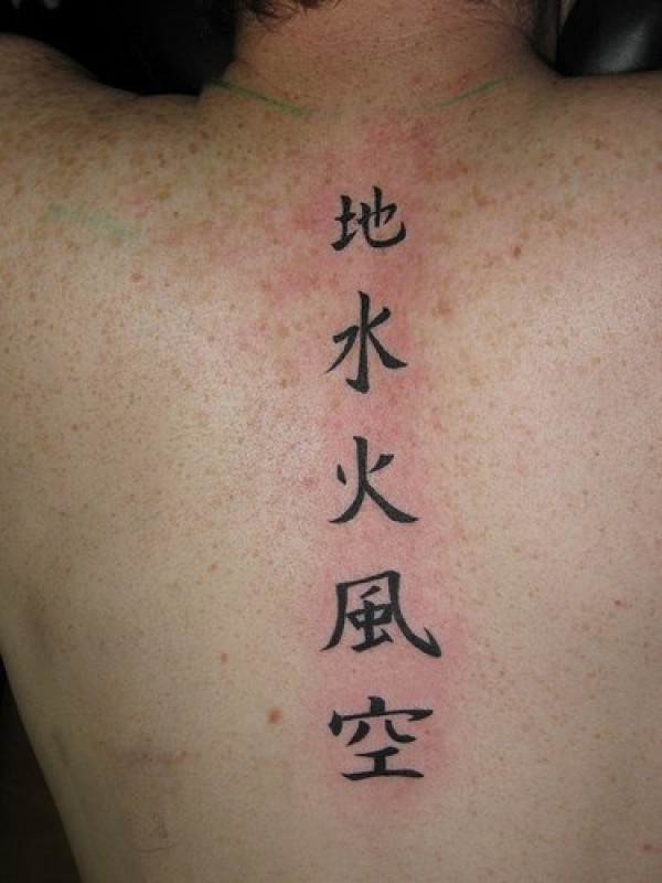 背部中国风汉字黑色纹身图案