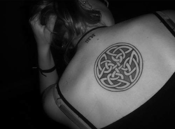 背部圆形的黑白凯尔特结纹身图案