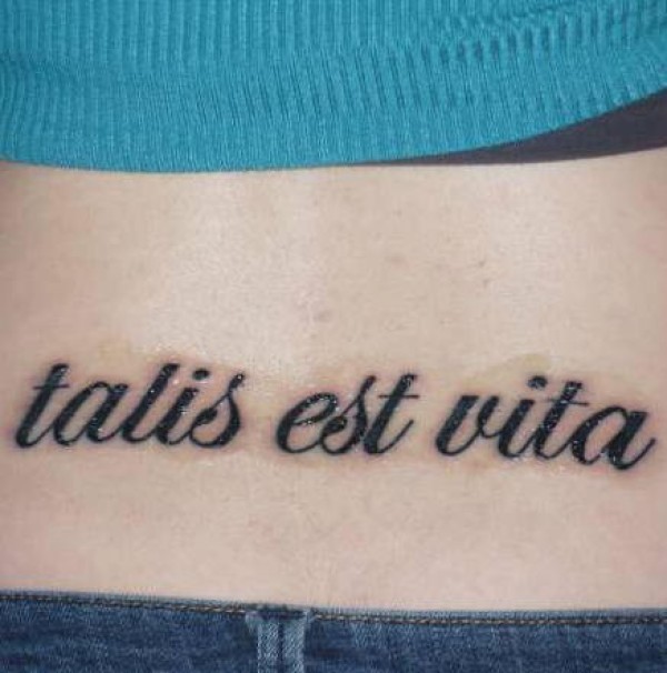 背部黑色拉丁文纹身图案