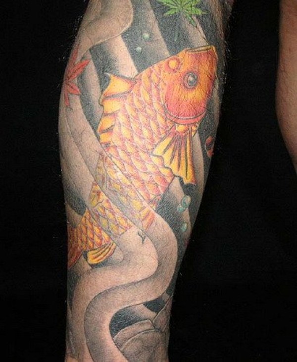 日式金色鲤鱼纹身图案