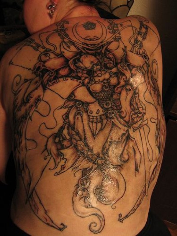 背部黑色海盗纹身图案