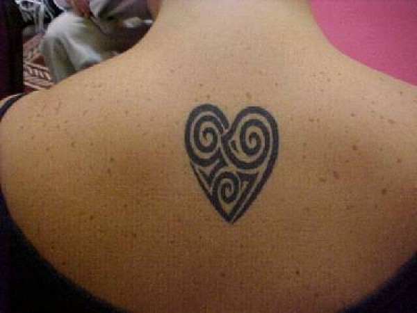 背部黑色的部落心形图腾纹身图案