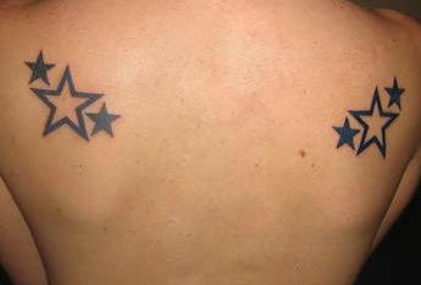 背部一堆黑色的星星纹身图案